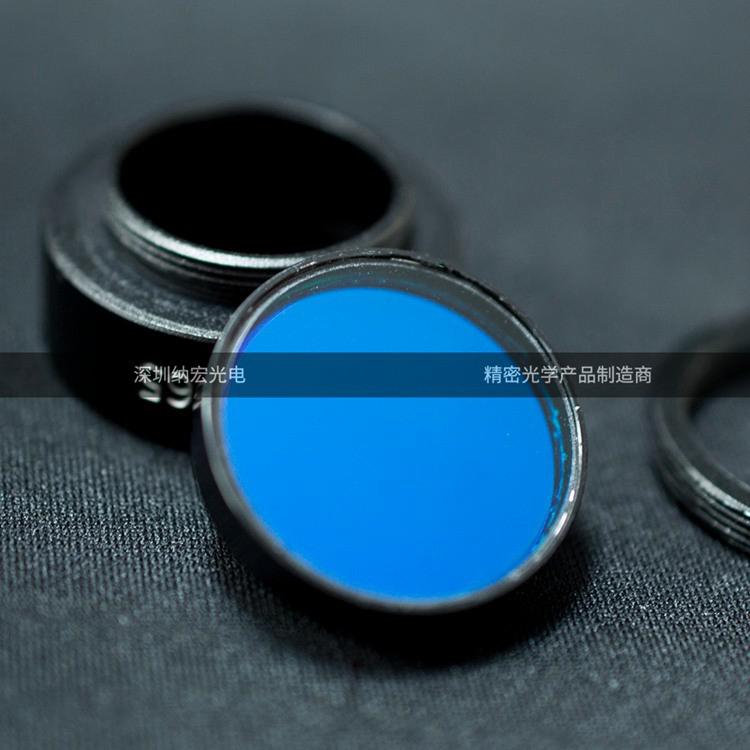 一般通過截止濾光片,或彩色濾光片相比,帶通濾光片設(shè)計及制作上都較困難,主要原因是,因為光譜波峰兩端的位置都需要比較精確的控制。而控制兩點的位置當(dāng)然比一點的困難度高多了。 帶通濾光片最大透射比的一半所對應(yīng)的波長λ1和λ2之差(λ1-λ1)nm稱為半寬度。短波截止波長是在峰值短波側(cè),透射比等于零的波長。長波截止玻長是在峰值長波側(cè),透射比等于零的波長,有些品種,在長波側(cè)玻璃透射比達(dá)不到零,則以某一波長的透射比表示。